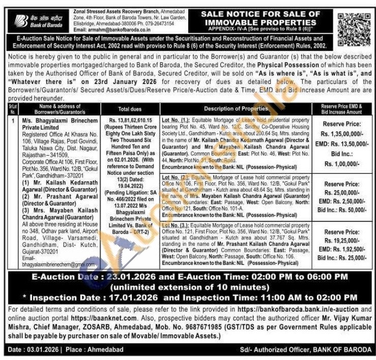 Lot No. (2.): Equitable Mortgage of Lease hold commercial property Office No.106, First Floor, Plot No. 356, Ward No. 12/B, "Gokul Park" situated at Gandhidham-Kutch area about 48.64 Sq. Mtrs. standing in the name of Mrs. Mayaben Kailash Chandra Agarwal (Guarantor) Common Boundaries. East: Passage, West: Open Balcony, North: Office No. 121, South: Office No. 101-A.