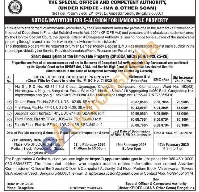 No 01, PID No: 62-81-1,3rd Cross, Jayanagar, Chengaiah Compound, Krishnanagar, Ward No: 153(62), Hombegowda Nagara, Bengaluru. East to West 40 ft. North to South 24 ft Aggregating to 960 Sq.ft. Google Map link: https://maps.app.goo.gl/LAW5AnYQz1Q9mGLB8, Latitude and Longitude: 12°55'44.7"N 77°35'53.4"