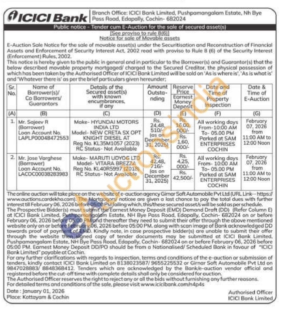 Make-HYUNDAI MOTORS INDIA LTD Model-NEW CRETA SX OPT KNIGHT DIESEL AT Reg No. KL35M1057 (2023) RC Status-Not Available