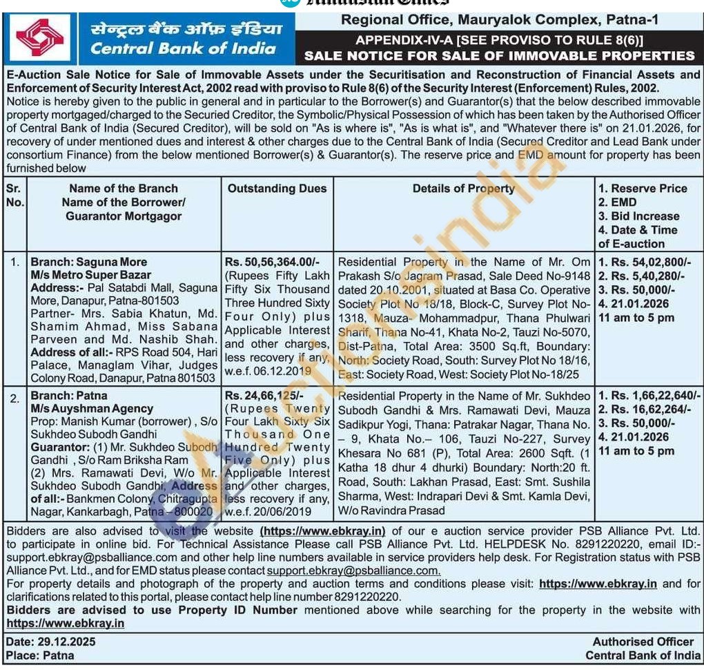 Residential Property in the Name of Mr. Om Prakash S/o Jagram Prasad, Sale Deed No-9148 dated 20.10.2001, situated at Basa Co. Operative Society Plot No 18/18, Block-C, Survey Plot No-1318, Mauza- Mohammadpur, Thana Phulwari Sharif, Thana No-41, Khata No-2, Tauzi No-5070, Dist-Patna, Total Area: 3500 Sq.ft, Boundary: North: Society Road, South: Survey Plot No 18/16, East: Society Road, West: Society Plot No-18/25