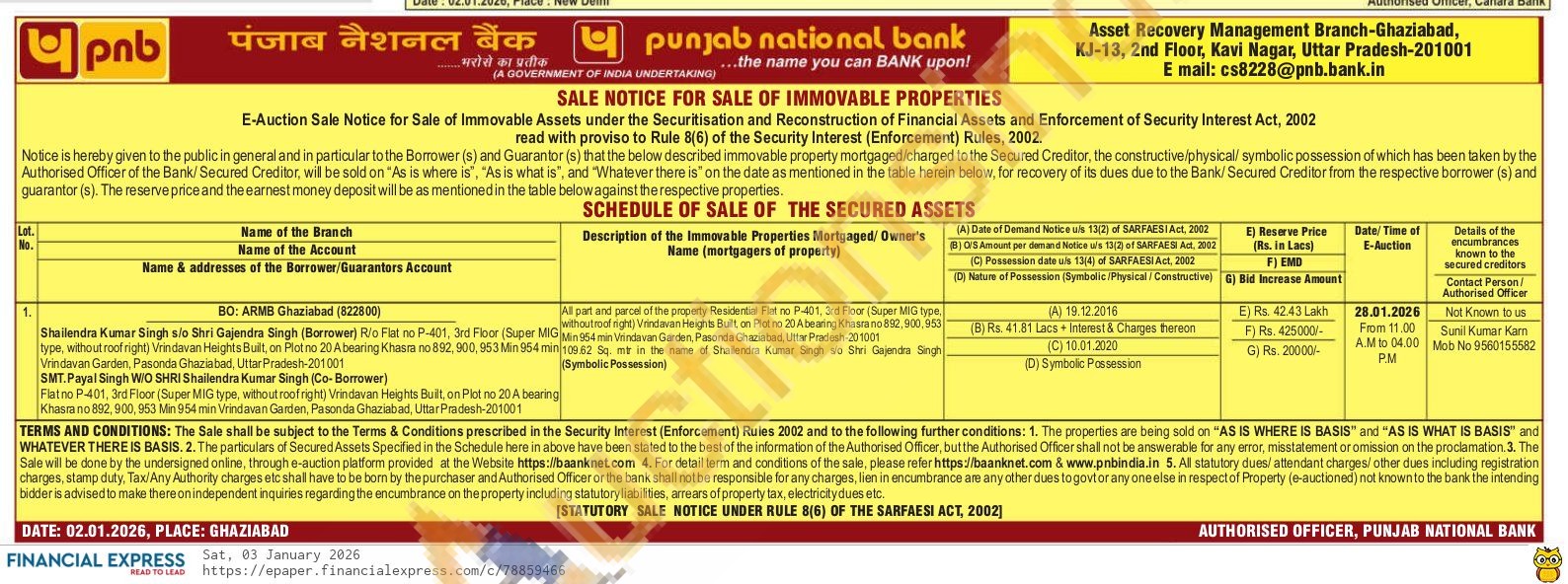 All part and parcel of the property Residential Flat no P-401: 3rd Floor (Super MIG type without roof right) Vindavan Heights Built on Plotno 200 A bearing Khasra no 892.900, 953 Min 954 min Vindavan Garden,PasondaGhaziabad,UP-201001 109.62 Sq. mtr in the name of Shailendra Kumar Singh s/o Shri Gajendra Singh