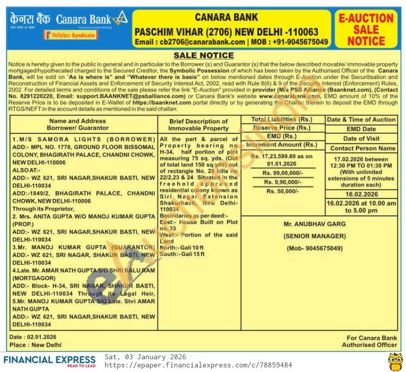 All the part & parcel of Property bearing no H-34, half portion of plot measuring 75 sq. yds. (Out of total land 150 sq.yds) out of rectangle No. 29 killa no 22/2,23 & 24 Situated in the freehold approved residential colony known as Siri Nagar Extension Shakurbasti, New Delhi-110034 Boundaries as per deed:-East: House Built on Plot no. 33 West: Portion of the said Land