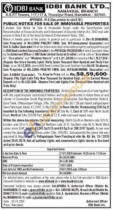 All that piece and parcel of land together with the superstructure constructed thereon and to be constructed in future there at and situate in Coimbatore South Registration District, Singanallur Sub-Registration District, Sulur Taluk, Otterpalayam Village, S.No. 392 part & S.No. 393/2B part layout pallapalayam Town Panchayat dated: 4.5.1992, S.J No.158/92. In these Site No. 10 measuring 2243 Sq.ft bounded by the following boundaries: West of Site No. 9, East of 30ft wide North South Road, North of S.No. 393/2B Part, South of 23 ft. wide east west layout road. Within the above boundaries the land measuring: North South on Western side 52/½ ft. Eastern side 55½ ft, East West on Northern side 35 ft. Southern side 40 ft. North West corner cross 6%ft. totalling 2243 Sq.ft (5 cent 65 Sq.ft or 208.3747 Sqmt). As per new survey the above property comes under S.No. 393/281. Subsequently the above site was approved & Regularized by Pallapalayam Town Panchayat vide Na. KA. No. 75/2018 dated 29.01.20 19. And all pathway rights and easementary rights shown in the deed and prior deeds.