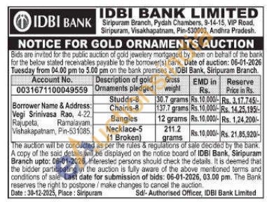 IDBI Bank Gold Auctions Auction in Visakhapatnam