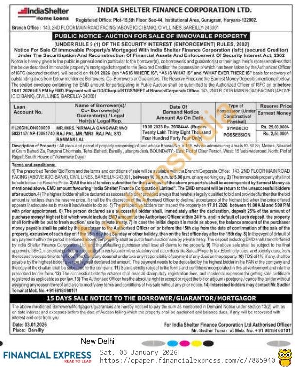 All piece and parcel of property comprising of land whose Khasra No is 166, whose admeasuring area is 82.80 Sq. Metres, Situated at Gram Bahedi Za, Pargana Chomhala, Tehsil Bahedi Bareilly, uttar pradesh, BOUNDARY East Plot of Other Person, West: 15 feets wide road, North: Plot of Rajpal South House of Vishamwar Dayal