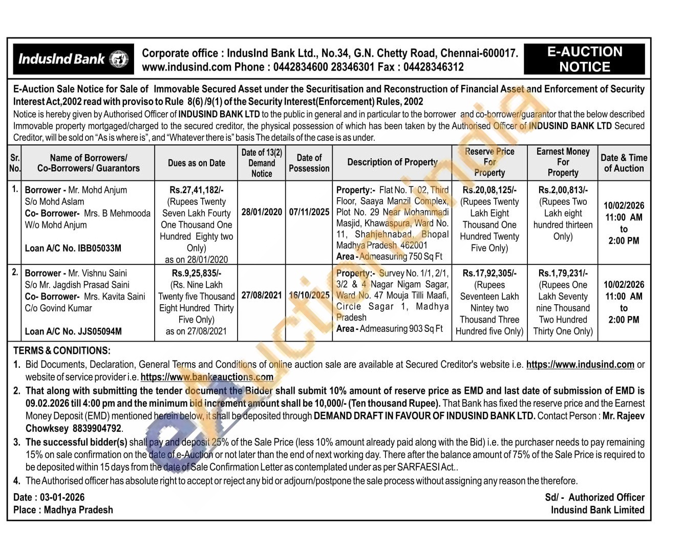 Property:- Survey No. 1/1, 2/1, 3/2 & 4 Nagar Nigam Sagar, Ward No. 47 Mouja Tilli Maafi, Circle Sagar 1, Madhya Pradesh Area-Admeasuring 903 Sq Ft