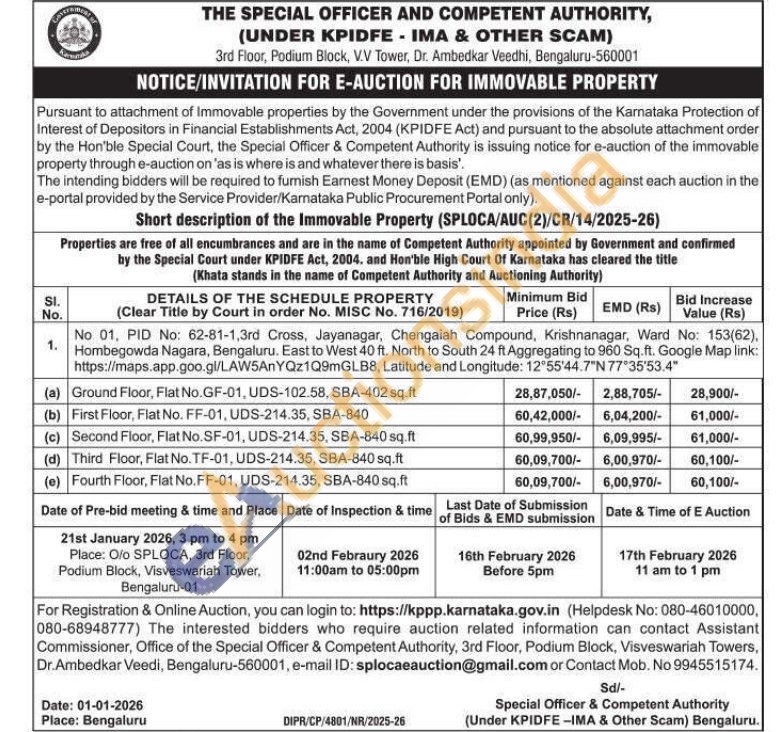 No 01, PID No: 62-81-1,3rd Cross, Jayanagar, Chengaiah Compound, Krishnanagar, Ward No: 153(62), Hombegowda Nagara, Bengaluru. East to West 40 ft. North to South 24 ft Aggregating to 960 Sq.ft. Google Map link: https://maps.app.goo.gl/LAW5AnYQz1Q9mGLB8, Latitude and Longitude: 12°55'44.7″N 77°35′53.4"