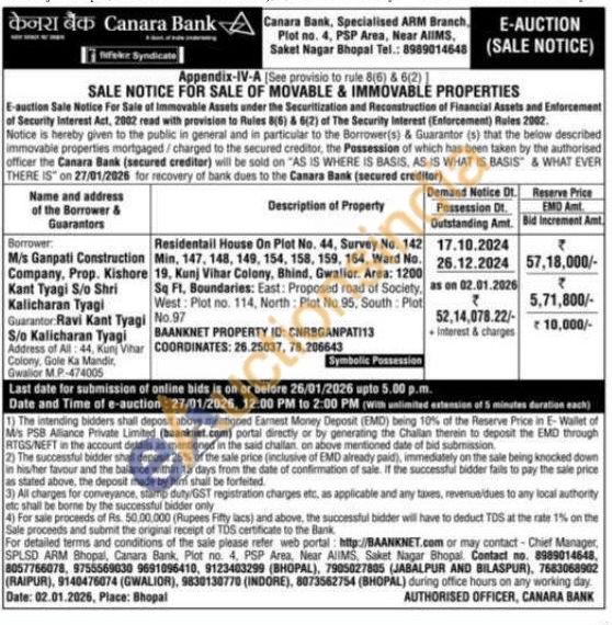 Residentail House On Plot No. 44, Survey No. 142 Min, 147, 148, 149, 154, 158, 159, 164, Ward No. 19, Kunj Vihar Colony, Bhind, Gwalior. Area: 1200 Sq Ft