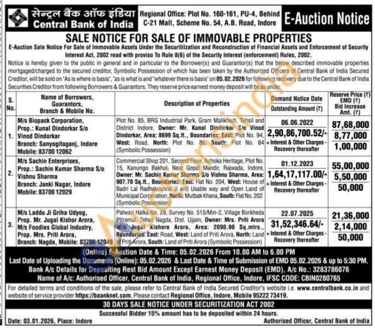 Commercial Shop 201, Second Floor, Ashoka Heritage, Plot No. 15. Kanungo Bakhal, Near Gopal Mandir, Rajwada, Indore, Owner: Mr. Sachin Kumar Sharma S/o Vishnu Sharma, Area: 907.70 Sq.ft., Boundaries: East: Flat No. 204, West: House of Badri Lal Radhakrishna Ji and Usable way and Open Land of Municipal Corporation, North: Mutbak Khana, South: Flat No. 202 (Symbolic Possession