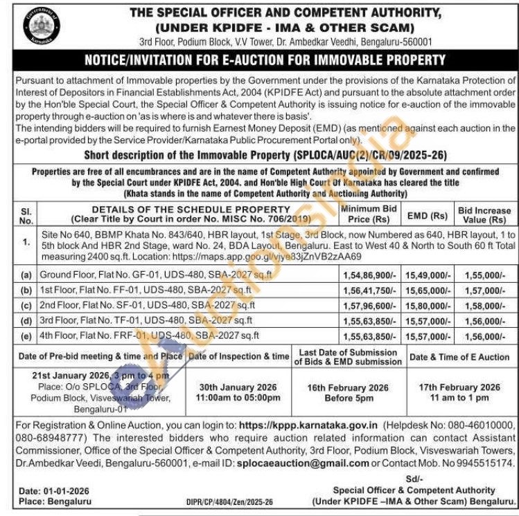 Site No 640, BBMP Khata No. 843/640, HBR layout, 1st Stage, 3rd Block, now Numbered as 640, HBR layout, 1 to 5th block And HBR 2nd Stage, ward No. 24, BDA Layout, Bengaluru. East to West 40 & North to South 60 ft Total measuring 2400 sq.ft.