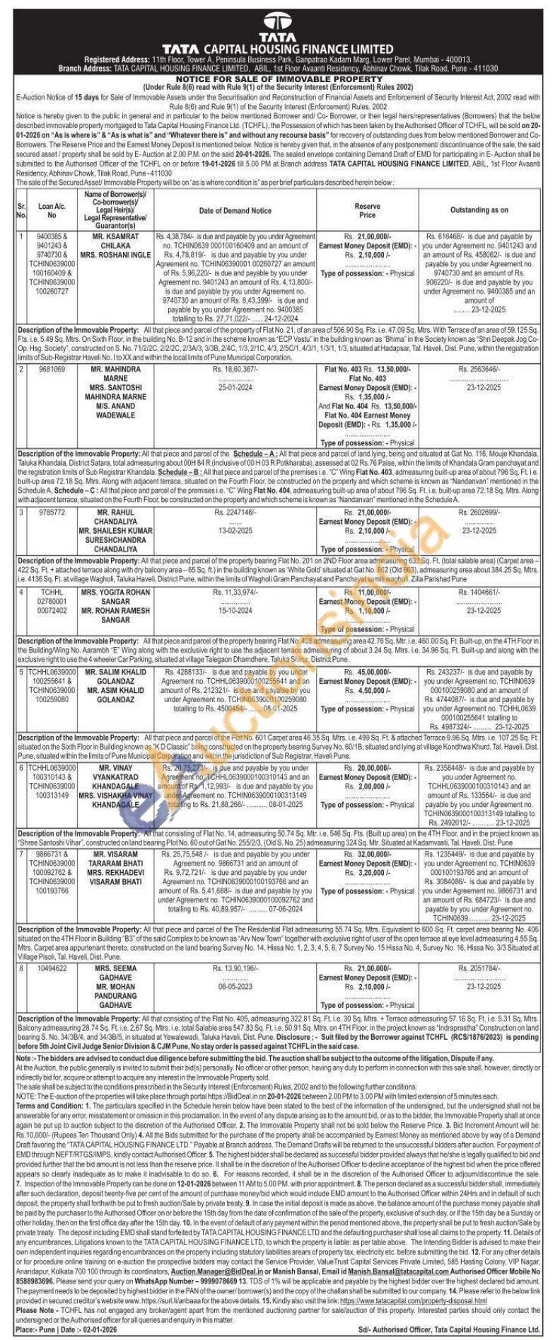 Description of the Immovable Property: All that piece and parcel of the property bearing Flat No. 201 on 2ND Floor area admeasuring 633 Sq. Ft. (total salable area) (Carpet area -422 Sq. Ft. + attached terrace along with dry balcony area-65 Sq. ft.) in the building known as White Gold situated at Gat No. 862 (Old 863), admeasuring area about 384.25 Sq. Mirs. i.e. 4136 Sq. Ft. at village Wagholi, Taluka Haveli, District Pune, within the limits of Wagholi Gram Panchayat and Panchayat samiti wagholi, Zilla Parishad Pune