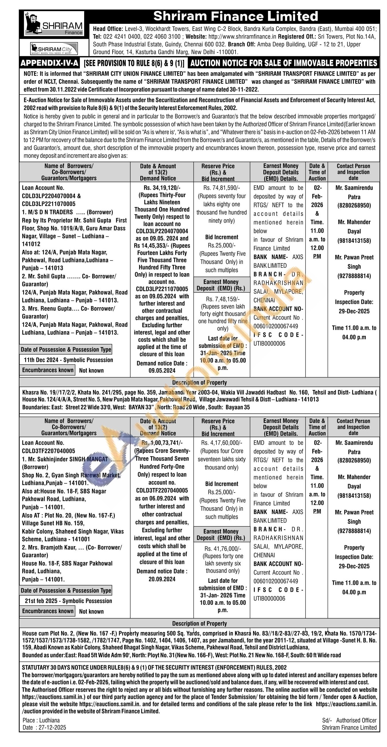 House cum Plot No. 2, (New No. 167 -F) Property measuring 500 Sq. Yards, comprised in Khasra No. 83//18/2-83//27-83, 19/2, Khata No. 1570/1734-1572/1537/1573/1738-1582, /1782/1747, Page No. 1402, 1404, 1405, 1407, as per Jamabandi, for the year 2011-12, situated at Village-Sunet H. B. No. 159, Abadi Known as Kahir Colomy, Shaheed Bhagat Singh Nagar, Vikas Scheme, Pakhewal Road, Tehsil and District Ludhiana, Bounded as under: East: Road 5tt Wide Adm 90, North: Ployt No. 31 (New No. 166-F), West: Plot No. 21 New No. 168-F, South: 60 ft Wide reed