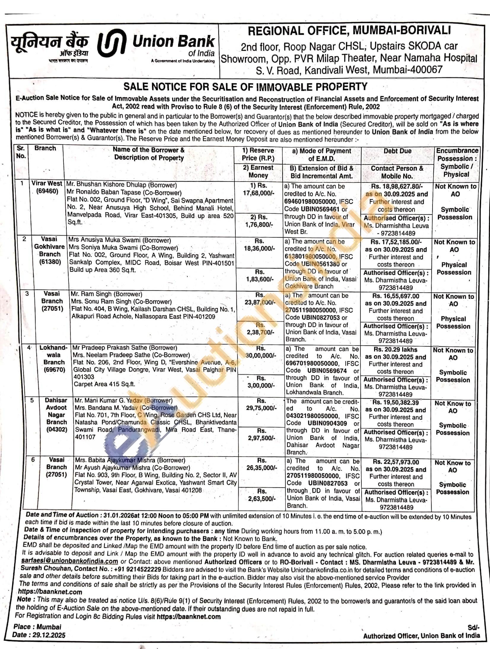 Flat No. 404, B Wing, Kailash Darshan CHSL, Building No. 1, Alkapuri Road Achole, Nallasopara East PIN-401209