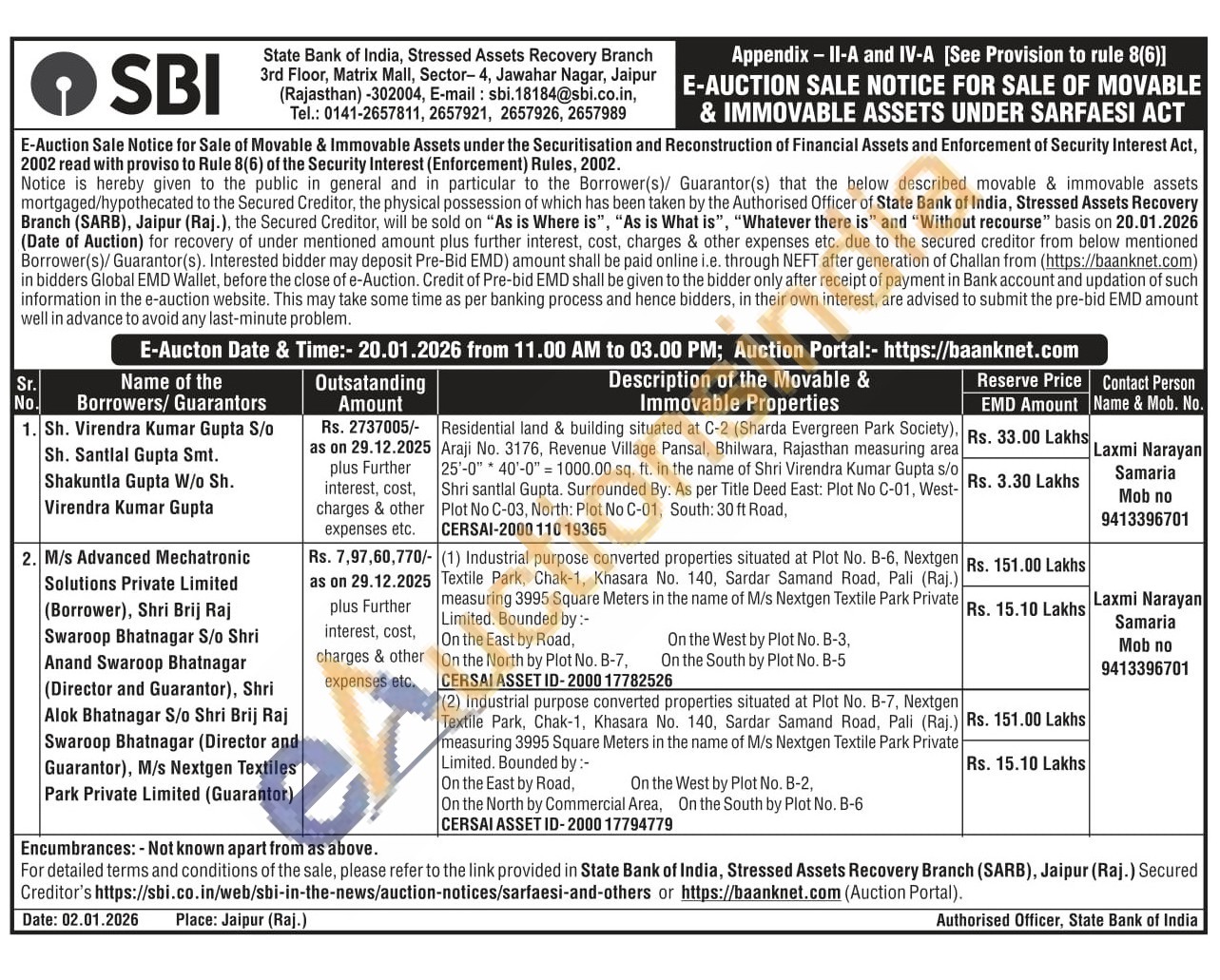 Industrial purpose converted properties situated at Plot No. B-7, Nextgen Textile Park, Chak-1, Khasara No. 140, Sardar Samand Road, Pali (Raj.) measuring 3995 Square Meters in the name of M/s Nextgen Textile Park Private Limited