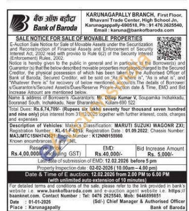 Description of Vehicles: Maker's Classification: MARUTI SUZUKI WAGONR ZXI; Registration Number: KL-61-F-6915: Registration Date: 01.09.2022: Chassis Number MA3JMTC1SNH743621; Engine Number: K12NN9155980