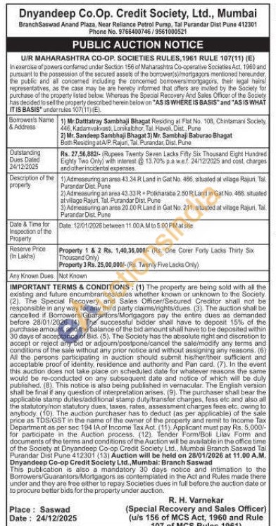 Admeasuring an area 43.34 R Land in Gat No. 466, situated at village Rajuri, Tal. Purandar Dist. Pune
