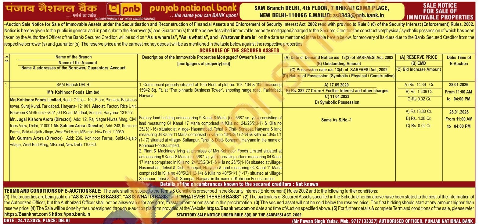 1. Commercial property situated at 10th Floor of plot no. 103, 104 & 105 measuring 15942 Sq. Ft. at "The pinnacle Business Tower", shooting range road, Faridabad, Haryana.