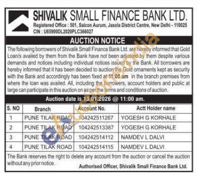 Shivalik Small Finance Bank Ltd Gold Auctions Auction in New Delhi