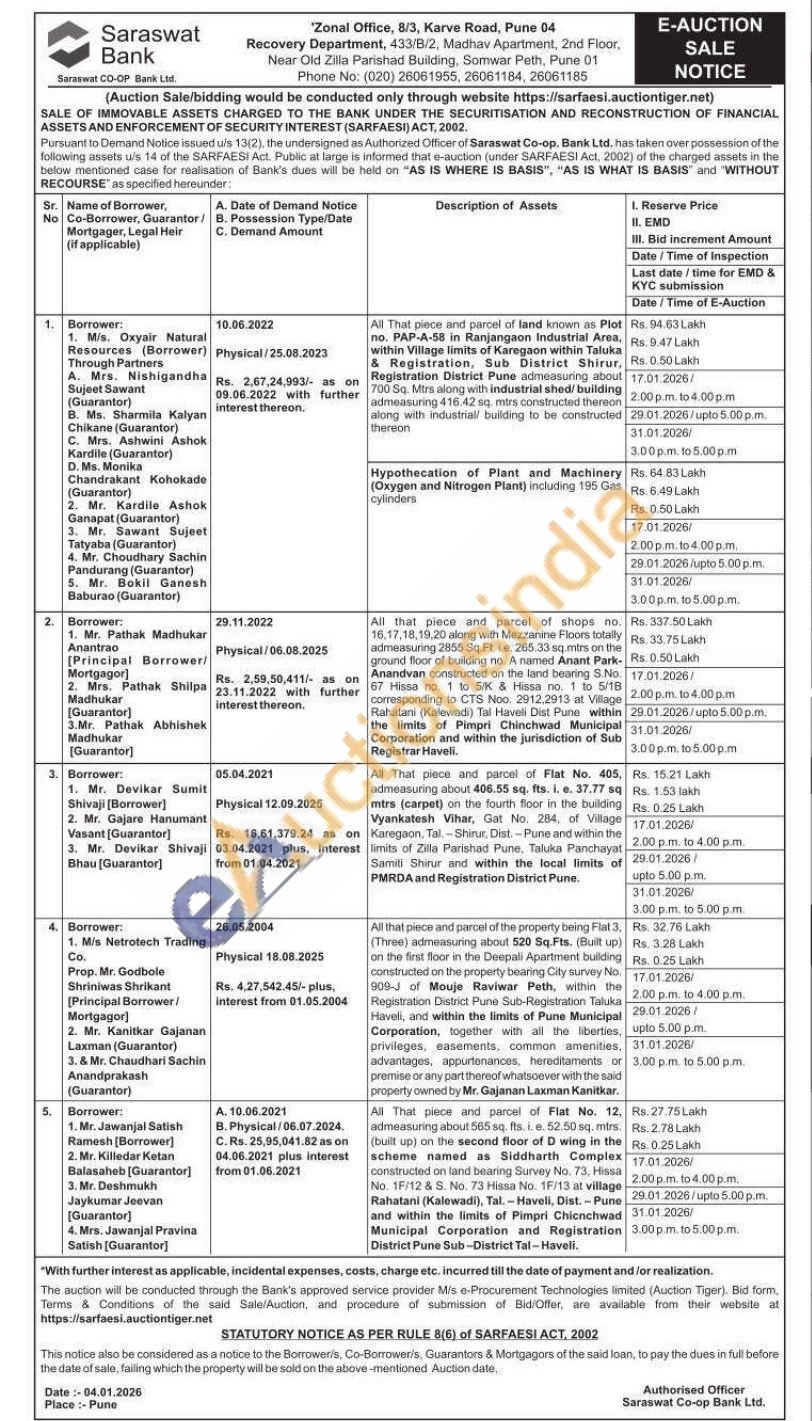 All That piece and parcel of Flat No. 12, admeasuring about 565 sq. fts. i. e. 52.50 sq. mtrs. F (built up) on the second floor of D wing in the scheme named as Siddharth Complex constructed on land bearing Survey No. 73, Hissa No. 1F/12 & S. No. 73 Hissa No. 1F/13 at village Rahatani (Kalewadi), Tal. - Haveli, Dist. - Pune and within the limits of Pimpri Chinchwad Municipal Corporation and Registration 3 District Pune Sub-District Tal-Haveli
