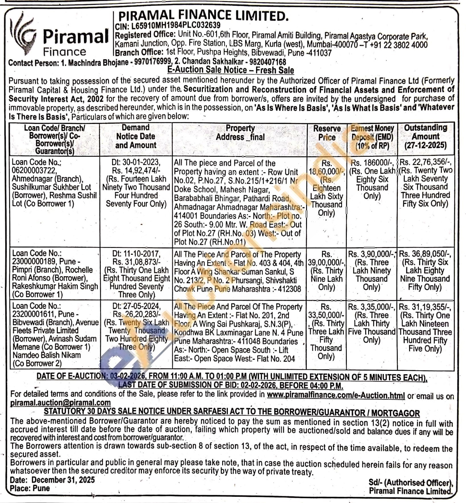 Contact Person: Machindra Bhojane-9970176999 / Chandan Sakhalkar - 9820407168