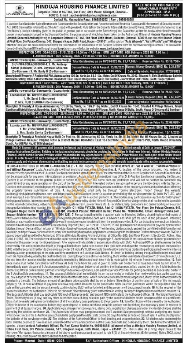 Description Of Property: A Freehold House Built On Plat No. 66, Admesuring 60 Sq. Yards 1.e. 50.16 Sq. Meter, Out Of Khasra No. 37, Situated At Village Datawali Gesupur, Pargana Tehsil & District Meerut. Boundries: East: 15 Feet Wide Road West: Other's Plot, North: House Of Sunder. South: Part Of Plot No. 67 Of Mahendari