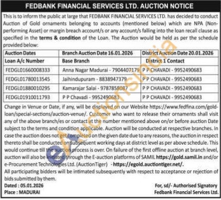 Fedbank Financial Services Ltd Gold Auctions Auction in Madurai