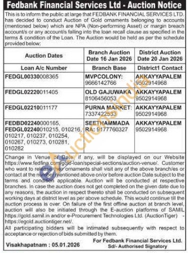 Fedbank Financial Services Ltd Gold Auctions Auction in Visakhapatnam
