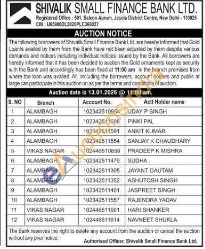 Shivalik Small Finance Bank Ltd Gold Auctions Auction in Lucknow