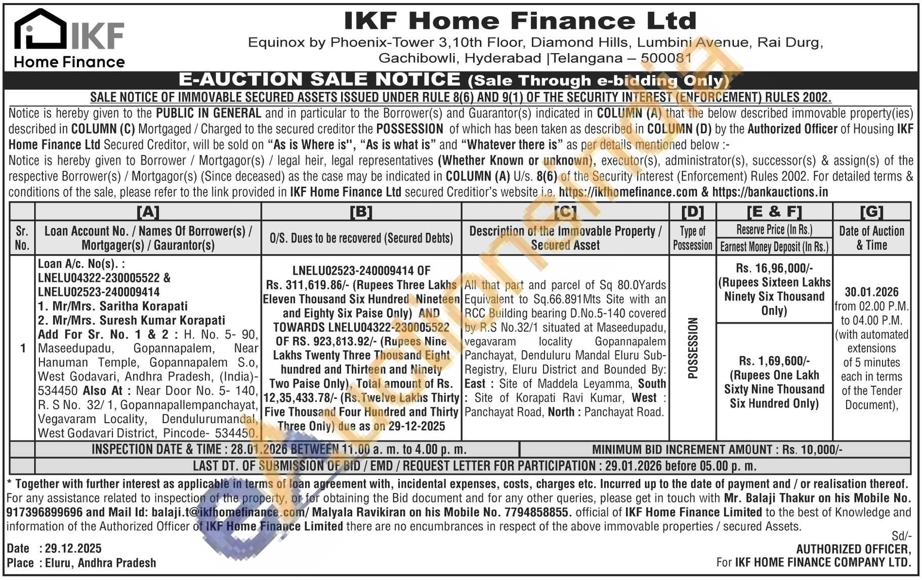 All that part and parcel of Sq 80.0Yards Equivalent to Sq.66.891Mts Site with an RCC Building bearing D.No.5-140 covered by R.S No.32/1 situated at Maseedupadu, vegavaram locality Gopannapalem Panchayat, Denduluru Mandal Eluru Sub-Registry, Eluru District and Bounded By: East: Site of Maddela Leyamma, South : Site of Korapati Ravi Kumar, West: Panchayat Road, North: Panchayat Road.