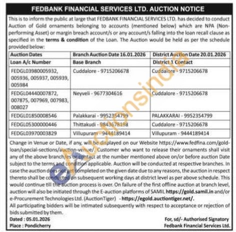 Fedbank Financial Services Ltd Gold Auctions Auction in Cuddalore