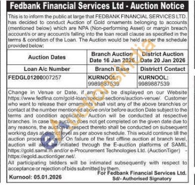 Fedbank Financial Services Ltd Gold Auctions Auction in Kurnool