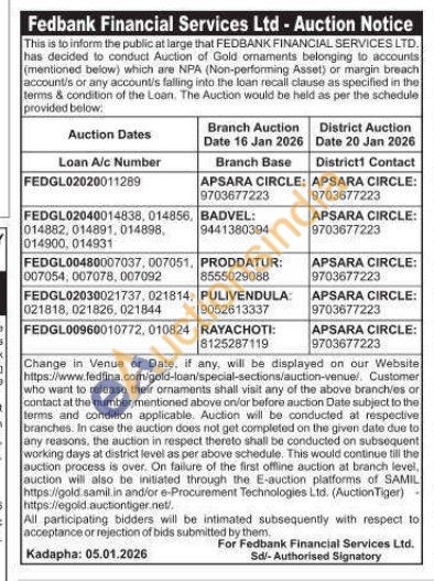 Fedbank Financial Services Ltd Gold Auctions Auction in Kadapa