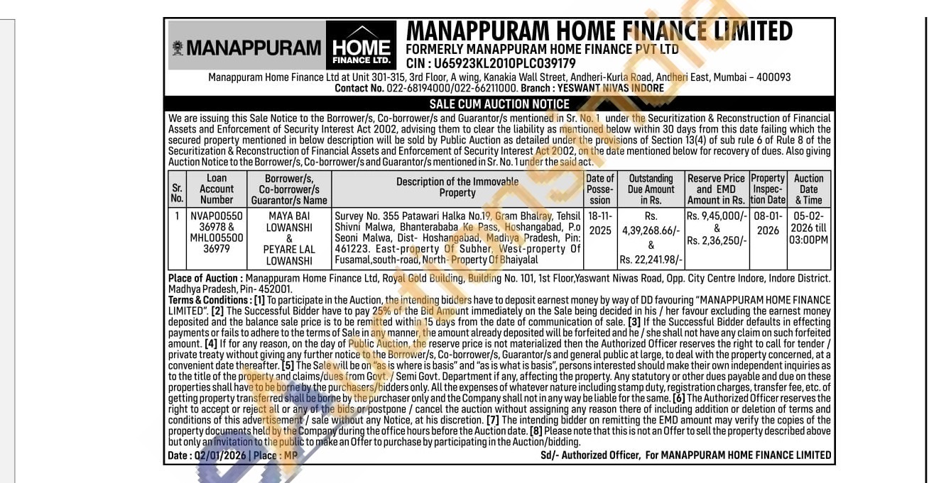 Survey No. 355 Patawari Halka No.19, Gram Bhalray, Tehsil Shivní Malwa, Bhanterababa Ke Pass, Hoshangabad, P.o Seoni Malwa, Dist- Hoshangabad, Madhya Pradesh, Pin: 461223. East-property Of Subher, West-property Of Fusamal, south-road, North-Property Of Bhaiyalal