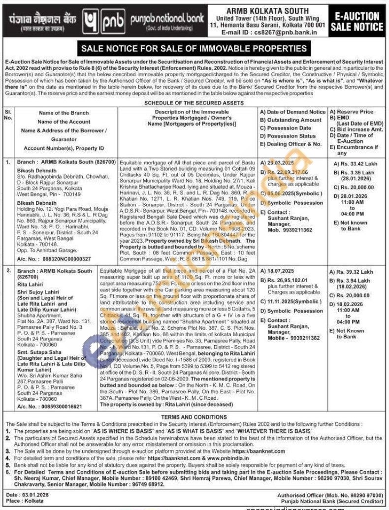 Equitable mortgage of All that piece and parcel of Bastu Land with a Two Storied building measuring 01 Cottah 09 Chittacks 40 Sq. Ft. out of 05 Decimiles, Under Rajpur Sonarpur Municipality Ward No. 18, Holding No. 27/1, Kali Krishna Bhattacharjee Road, lying and situated at, Mouza Harinavi, J. L. No. 36. R. S. and L. R. Dag No. 860, R. S. Khatian No. 1271, L. R. Khatian Nos. 749, 119, Police Station Sonarpur District South 24 Parganas, Under A.D.S.R.-Sonarpur, West Bengal, Pin-700148. recorded in Registered Bengali Sale Deed which was duly registered before the AD.S.R- Sonarpur, South 24 Parganas, and recorded in the Book No. 01, CD, Volume No. 1608-2023, Pages from 91102 to 91117, Being No. 160804447 for the year 2023. Property owned by Sri Bikash Debnath. The Property is butted and bounded by North: 5 No scheme Plot. South: 08 feet Common Passage, East: 10 feet Common Passage, West: R. S. 861 & 861/1101 No. Dag
