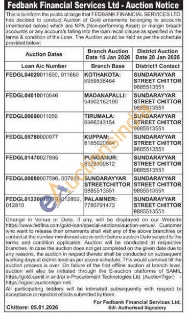 Fedbank Financial Services Ltd Gold Auctions Auction in Chittoor