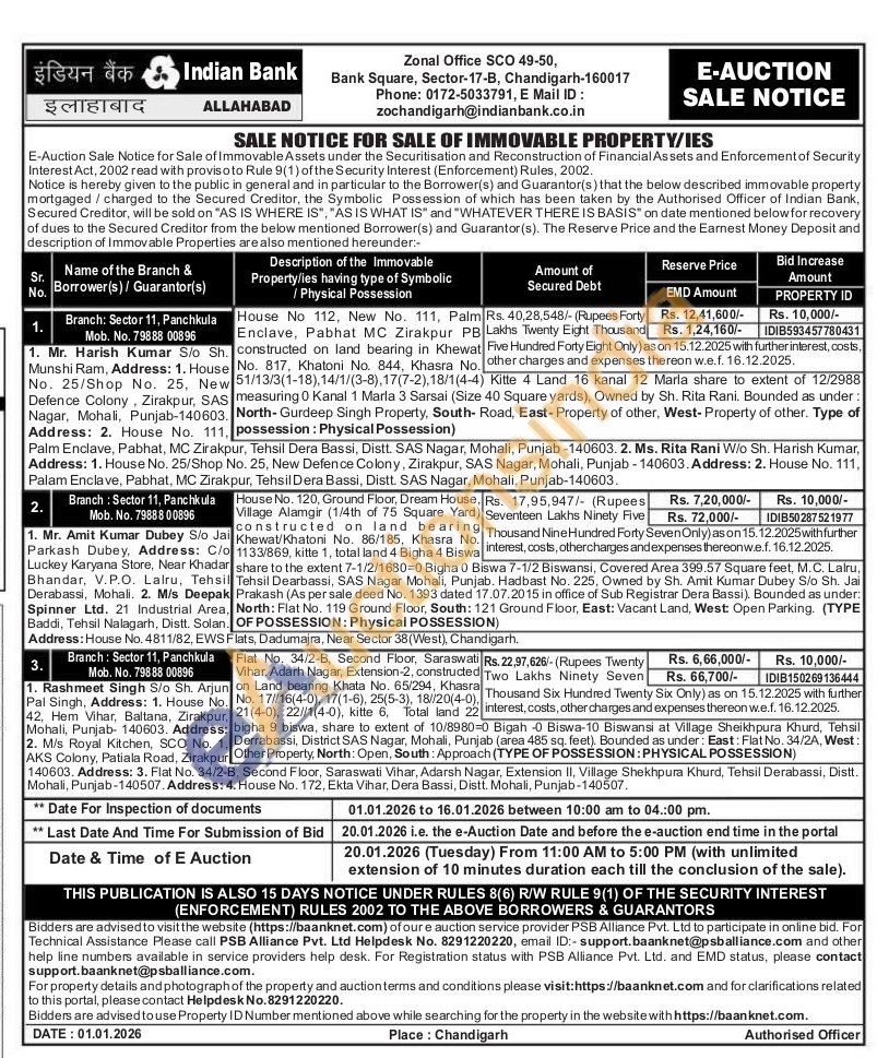 House No. 120, Ground Floor, Dream House, Village Alamgir (1/4th of 75 Square Yard) constructed on land bearing Khewat/Khatoni No. 86/185, Khasra No. 1133/869, kitte 1, total land 4 Bigha 4 Biswa share to the extent 7-1/2/1680-0 Bigha Biswa 7-1/2 Biswansi, Covered Area 399.57 Square feet, M.C. Lalru Tehsil Dearbassi, SAS Nagar Mohali, Punjab