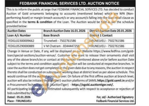 Fedbank Financial Services Ltd Gold Auctions Auction in Tirunelveli