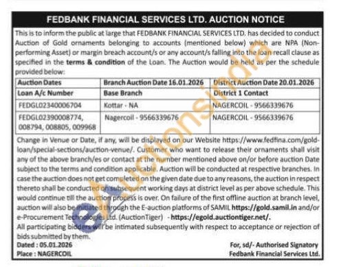 Fedbank Financial Services Ltd Gold Auctions Auction in Tirunelveli