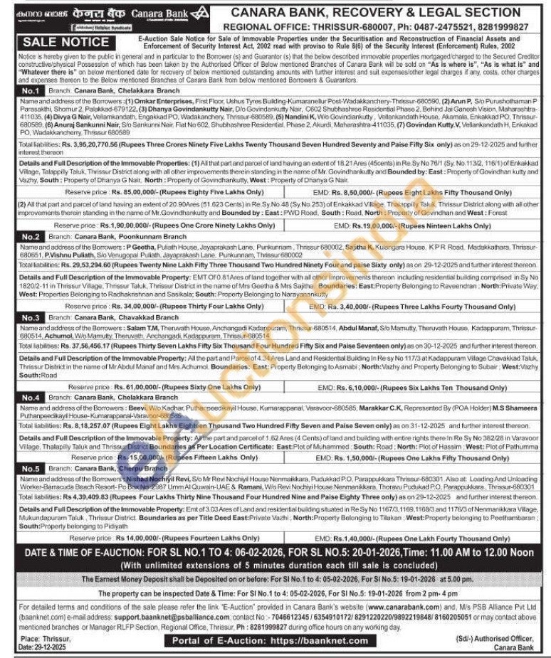 4) All the part and parcel of 1.62 Ares (4 Cents) of land and building with entire rights there In Re Sy No 382/28 in Varavoor Village, Thalapilly Taluk and Thrissur District Boundaries as Per Location Certificate: East: Plot of Muhammed South: Road: North: Plot of Hassim: West: Plot of Pathumma