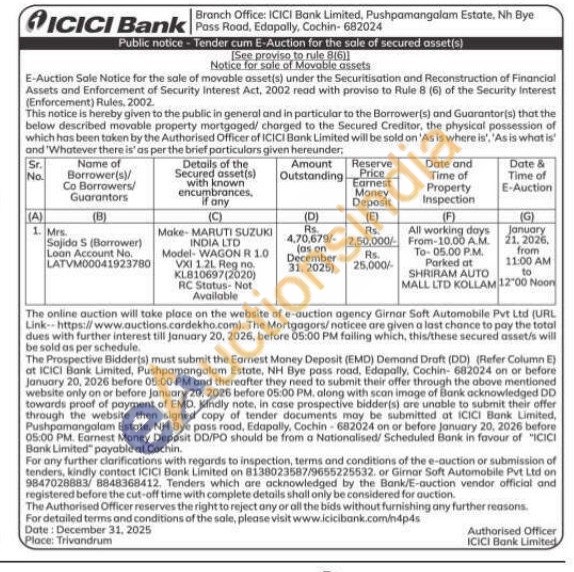 contact ICICI Bank Limited on 8138023587/9655225532. or Gimar Soft Automobile Pvt Ltd on 9847028883/8848368412