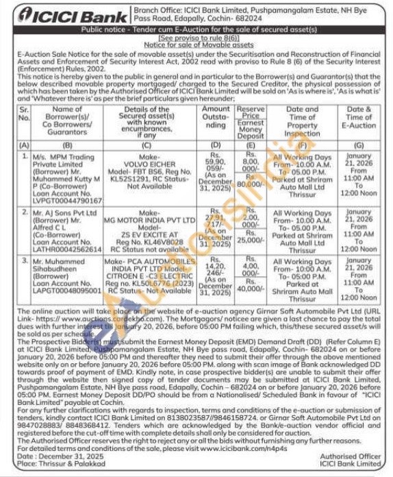 contact ICICI Bank Limited on 8138023587//9846158724. or Girnar Soft Automobile Pvt Ltd on 9847028883/8848368412