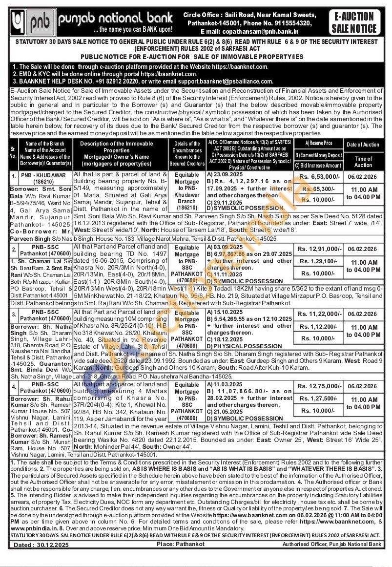 2) All that Part and Parcel of land and building bearing TD No. 1497 dated 16-06-2015, Comprising of Khasra No. 20R/3Min North(4-0), 20R/13Min, East(4-0), 20r/18Min, East(1-1) 20R/3Min South (4-0 20R/13Min West(4-0), 20R/18min West(1-1) Kite 9 Tadadi 18K2M having share 5/362 to the extant of land msg 0-5M MinKhe wat No. 21-18/22, Khatauni No. 95/6, HB. No. 219, Situated at Village Mirzapur P. O. Basroop, Tehsil and gs to Smt. Raj Rani W/o Sh. Chaman Lal Registered with Sub-Registrar Pathankot