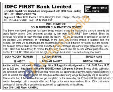 IDFC First Bank Ltd Gold Auctions Auction in Nainital