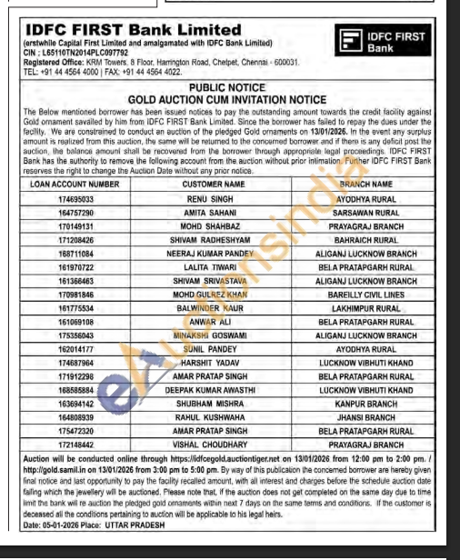 IDFC First Bank Ltd Gold Auctions Auction in Ayodhya