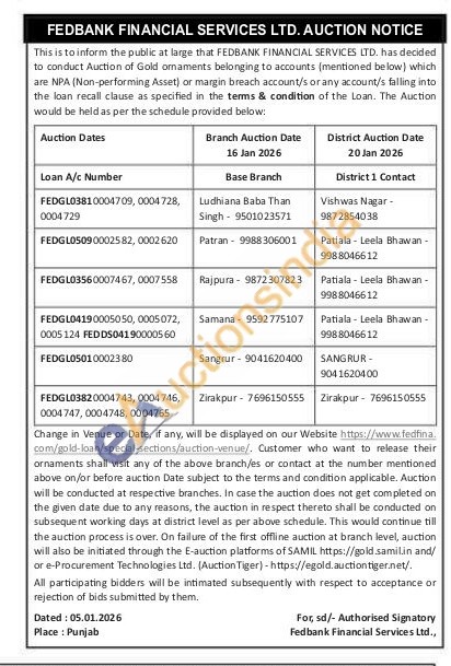 Fedbank Financial Services Ltd Gold Auctions Auction in Ludhiana