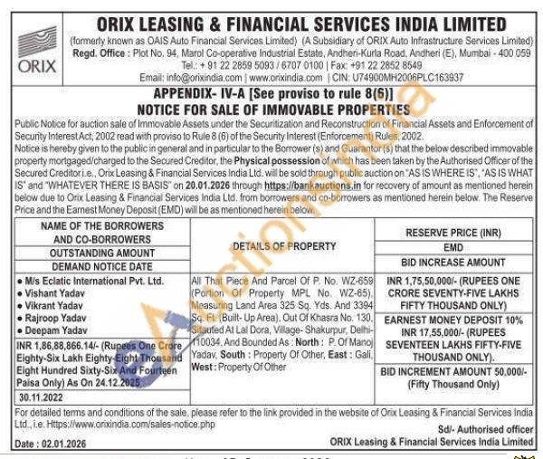 All That Piece And Parcel Of P. No. WZ-659 (Portion Of Property MPL No. WZ-65), Measuring Land Area 325 Sq. Yds. And 3394 Sq. Ft. (Built-Up Area), Out Of Khasra No. 130. Sitauted At Lal Dora, Village-Shakurpur, Delhi-110034. And Bounded As: North: P. Of Manoj Yadav, South: Property Of Other, East: Gali West: Property Of Other