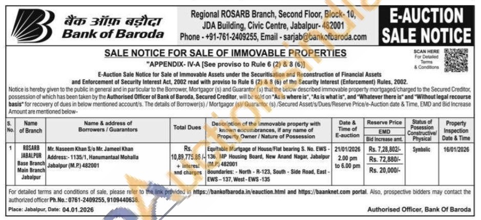 Equitable Mortgage of House/Flat bearing S. No. EWS-136, MP Housing Board, New Anand Nagar, Jabalpur (M.P.) 482001