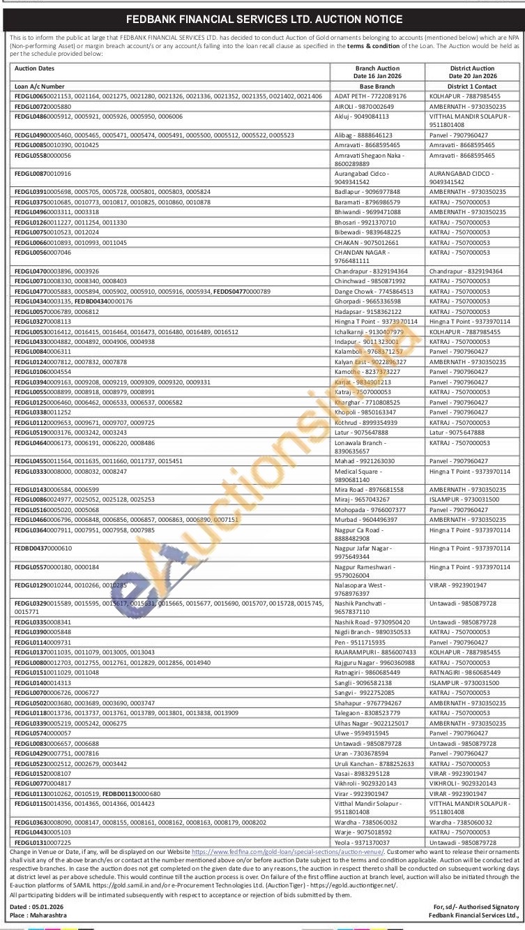 Fedbank Financial Services Ltd Gold Auctions Auction in Kolhapur