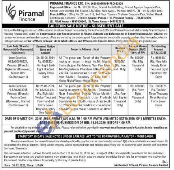 All The piece and Parcel of the Property having an extent Arazi No.46, Mauja Chaturbhujpur, Par-Mawai, Near Pani Tanki, Teh-Mughalsarai, Chandauli, Uttar Pradesh-232104. Boundaries As: North: -8 ft wide road South Boundary Of Kallu East House Nisha West House Nisha.