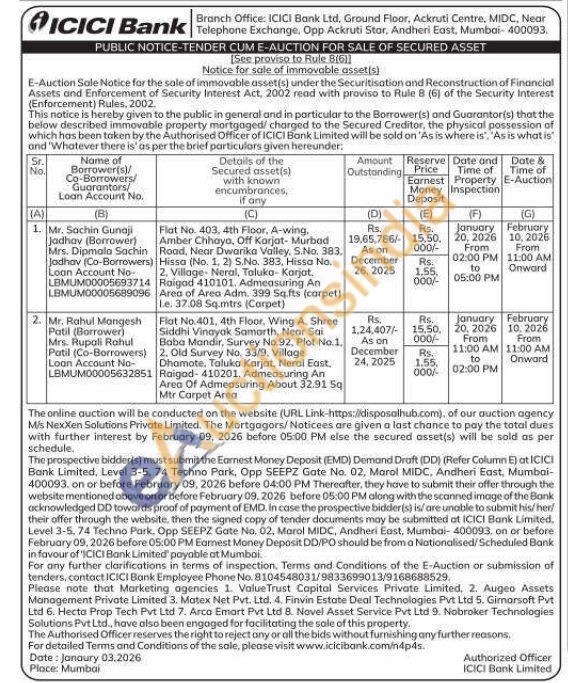 Flat No. 403, 4th Floor, A-wing, Amber Chhaya, Off Karjat- Murbad Road, Near Dwarika Valley, S.No. 383. Hissa (No. 1, 2) S.No. 383, Hissa No. 2. Village-Neral, Taluka-Karjat, Raigad 410101. Admeasuring An Area of Areo Adm. 399 Sq.fts (carpet) Le. 37.08 Sq.mtrs (Carpet)